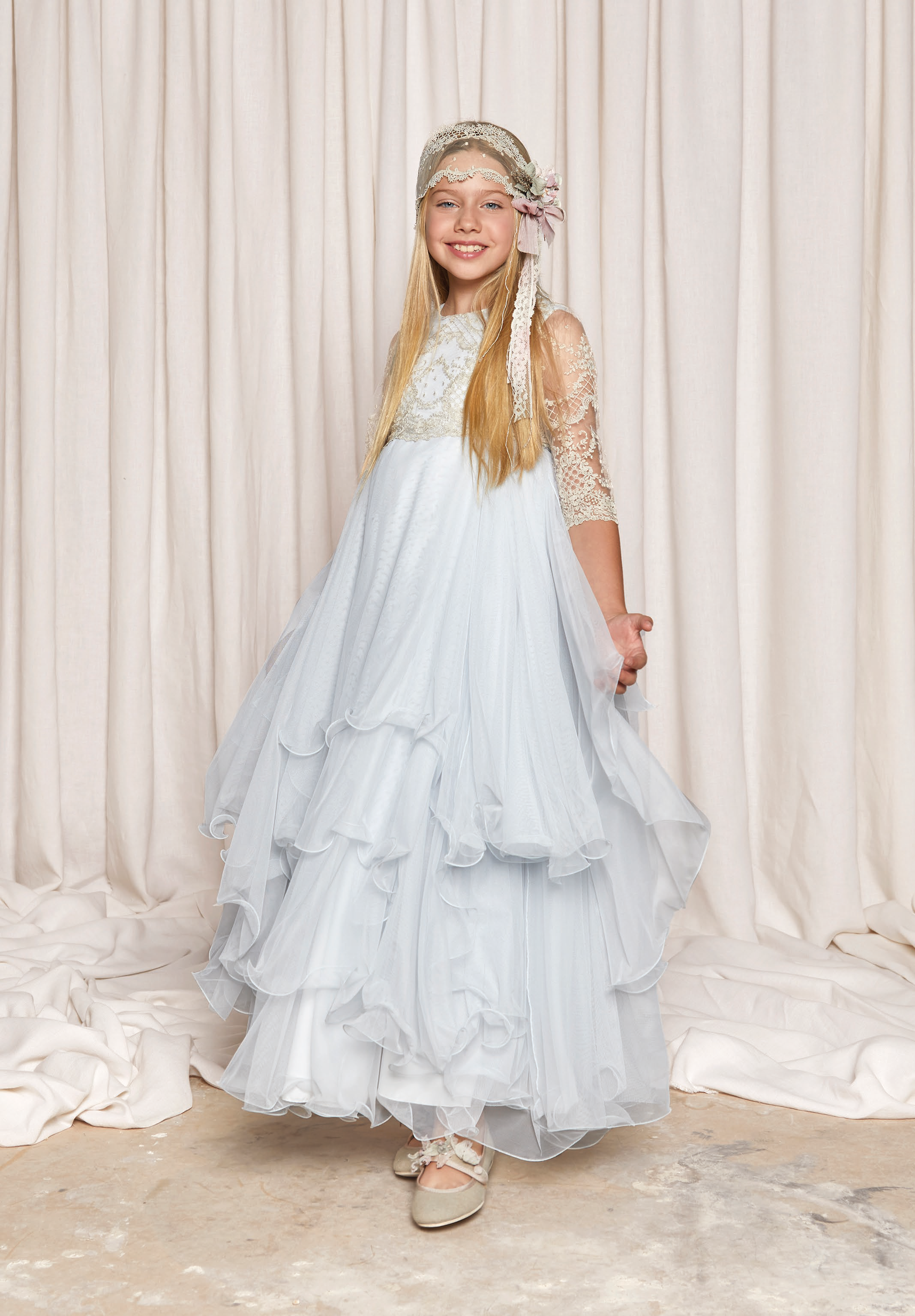 En nuestra sección de vestidos de comunión para niñas 2026 encontrarás una amplia variedad de vestidos elegantes y modernos, con cortes y acabados únicos y una gran variedad de colores y estilos. Todos nuestros vestidos están diseñados con los mejores materiales y cuidando cada detalle, para que tu hija se sienta como una verdadera princesa en su día especial. ¡Encuentra el vestido de comunión perfecto para tu hija ahora!