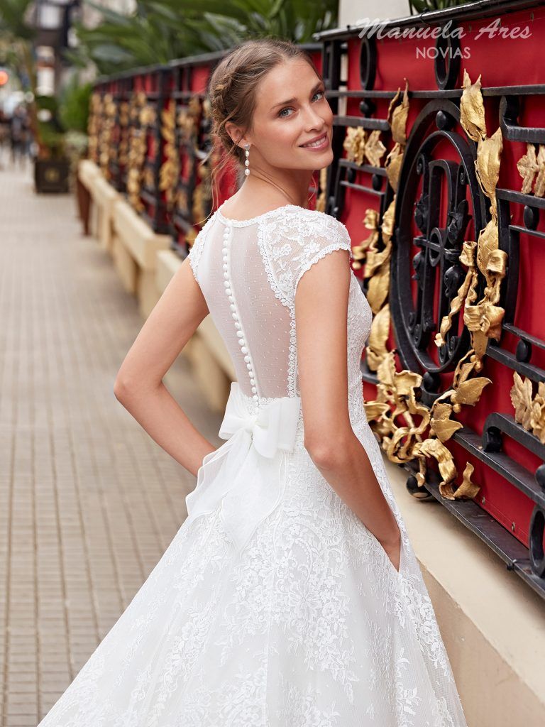 El vestido de novia Irvin tiene un punto jovial único. Deslumbra en tu boda con el romanticismo de su silueta princesa y su cuerpo de encaje. Presenta escote en V, manga francesa y una falda de tul que cae con clase desde la cintura, ofreciendo prácticos bolsillos. Su espalda está adornada con escote ilusión y un lazo.